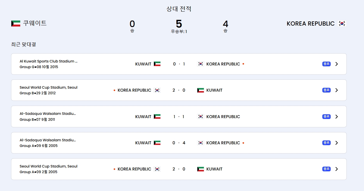 쿠웨이트전 경기 일정 및 중계 방송 정보