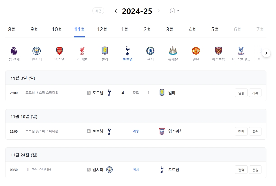 A3. 토트넘의 다음 경기 일정은 11월 10일 23입니다.